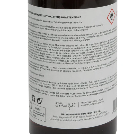 Ambientador de casa em spray, em recipiente de plástico e com uma mensagem wonder.