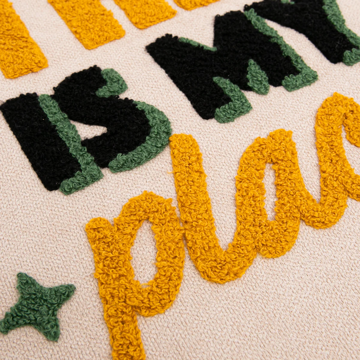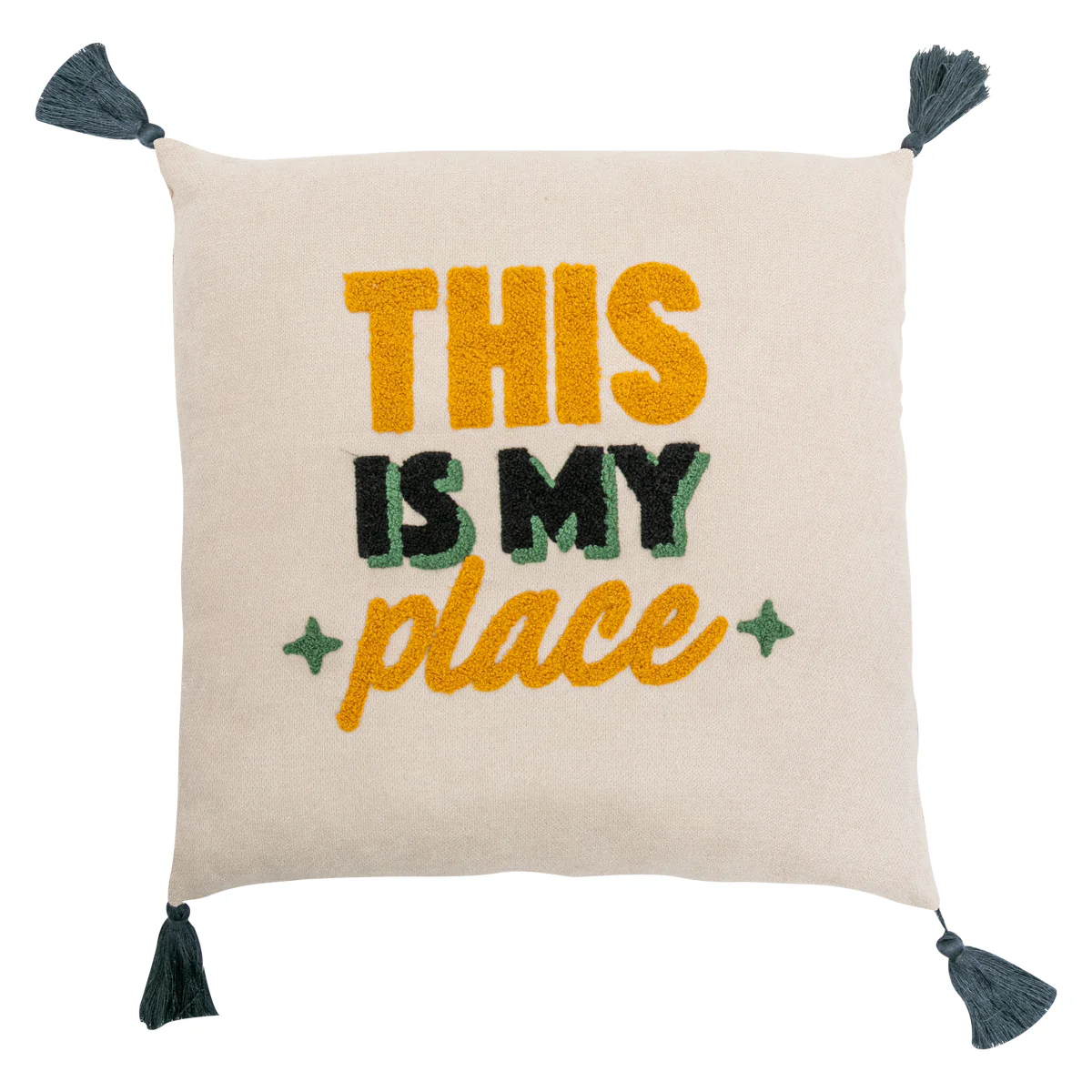 Cojín realizado en algodón, con funda extraíble y con un mensaje bordado.
