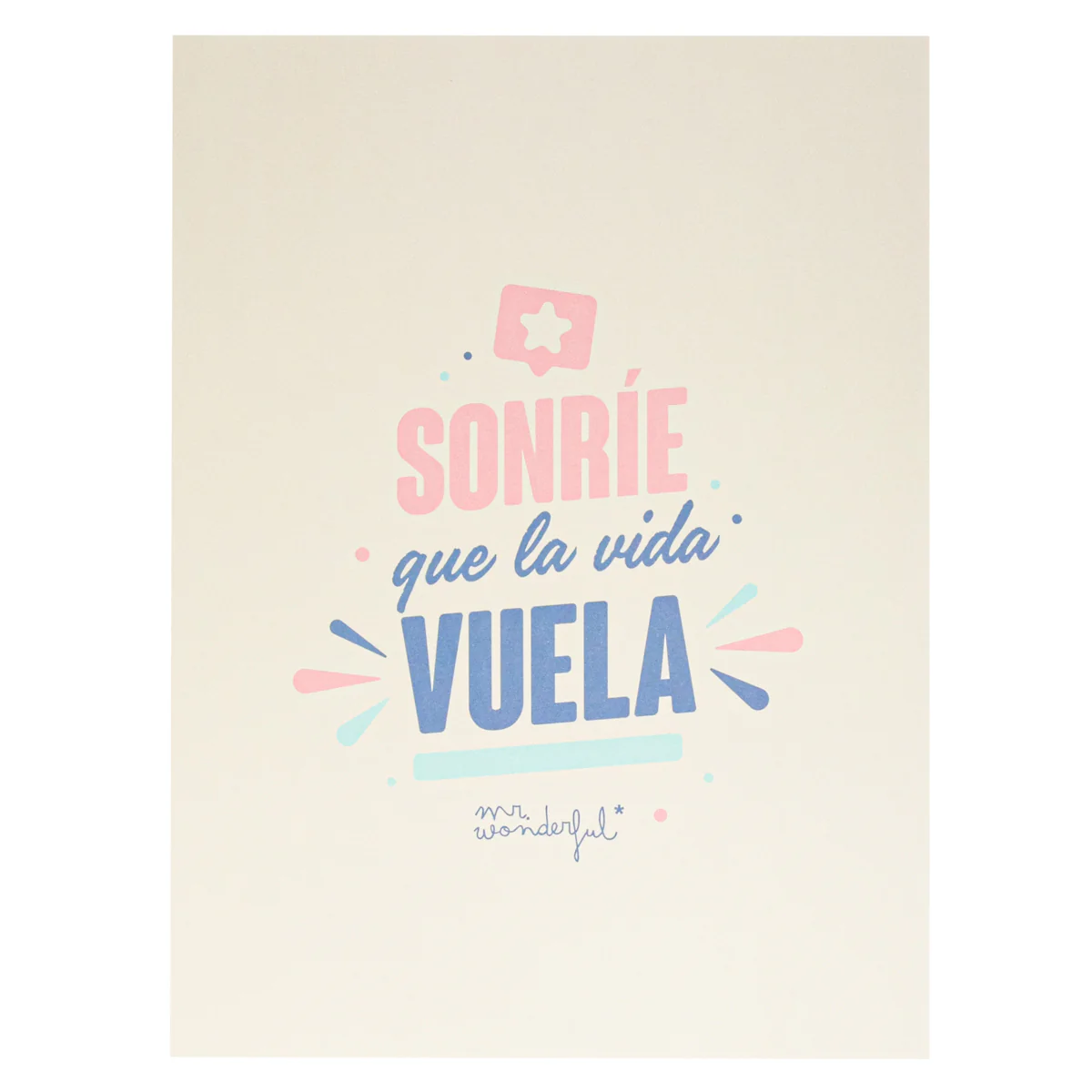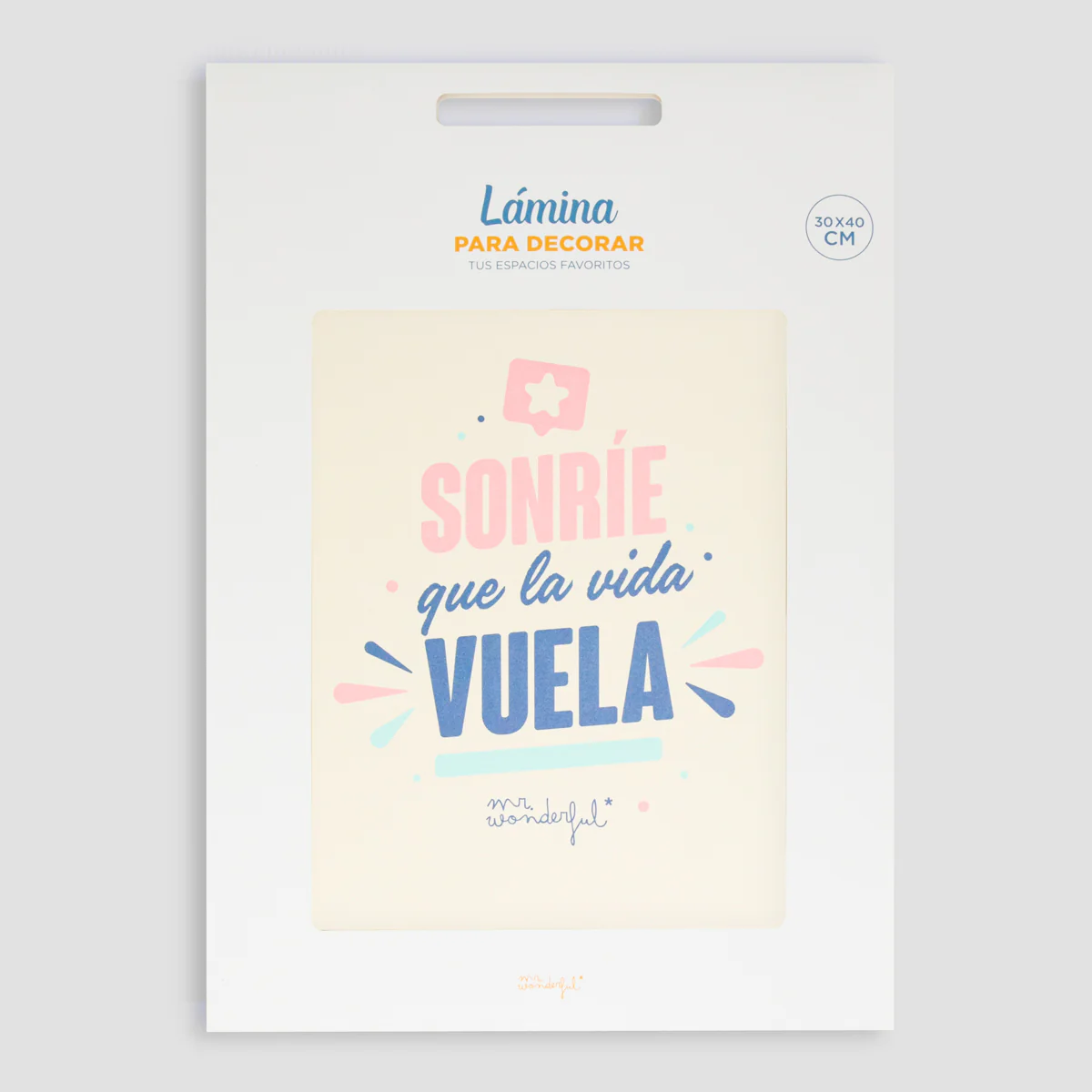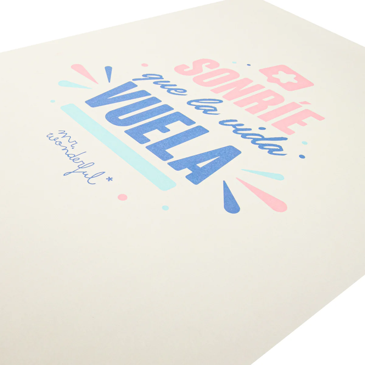 Lámina decorativa con mensaje inspirador, realizada en papel de 210 gsm. El packaging incluye una cómoda asa para transportarla.