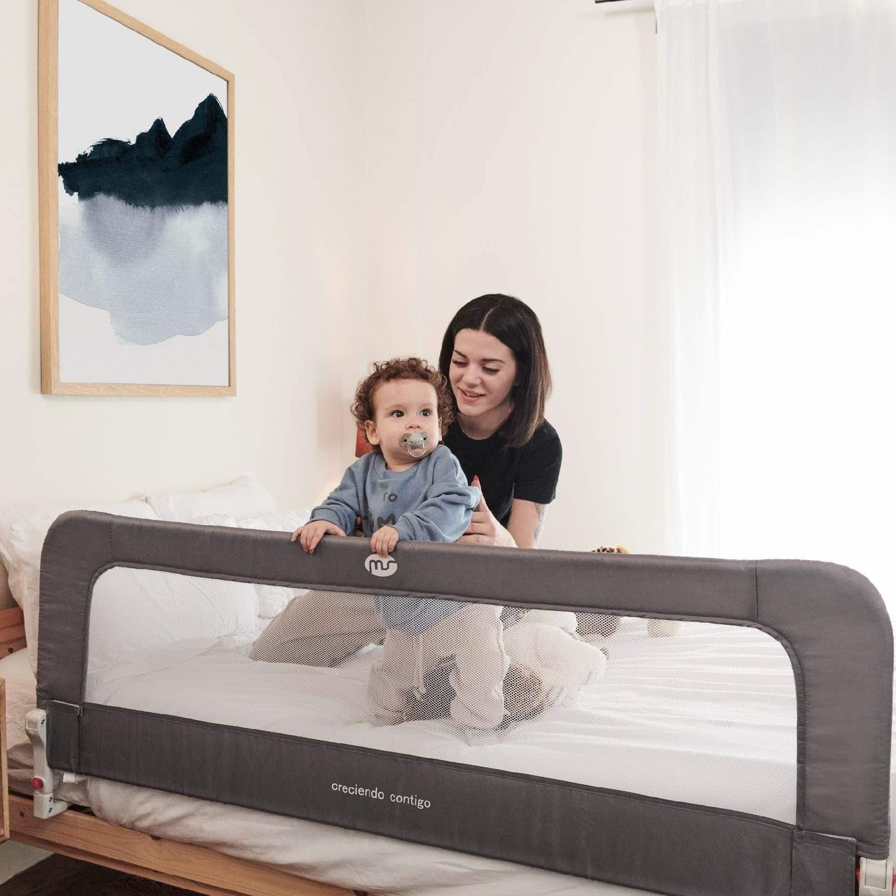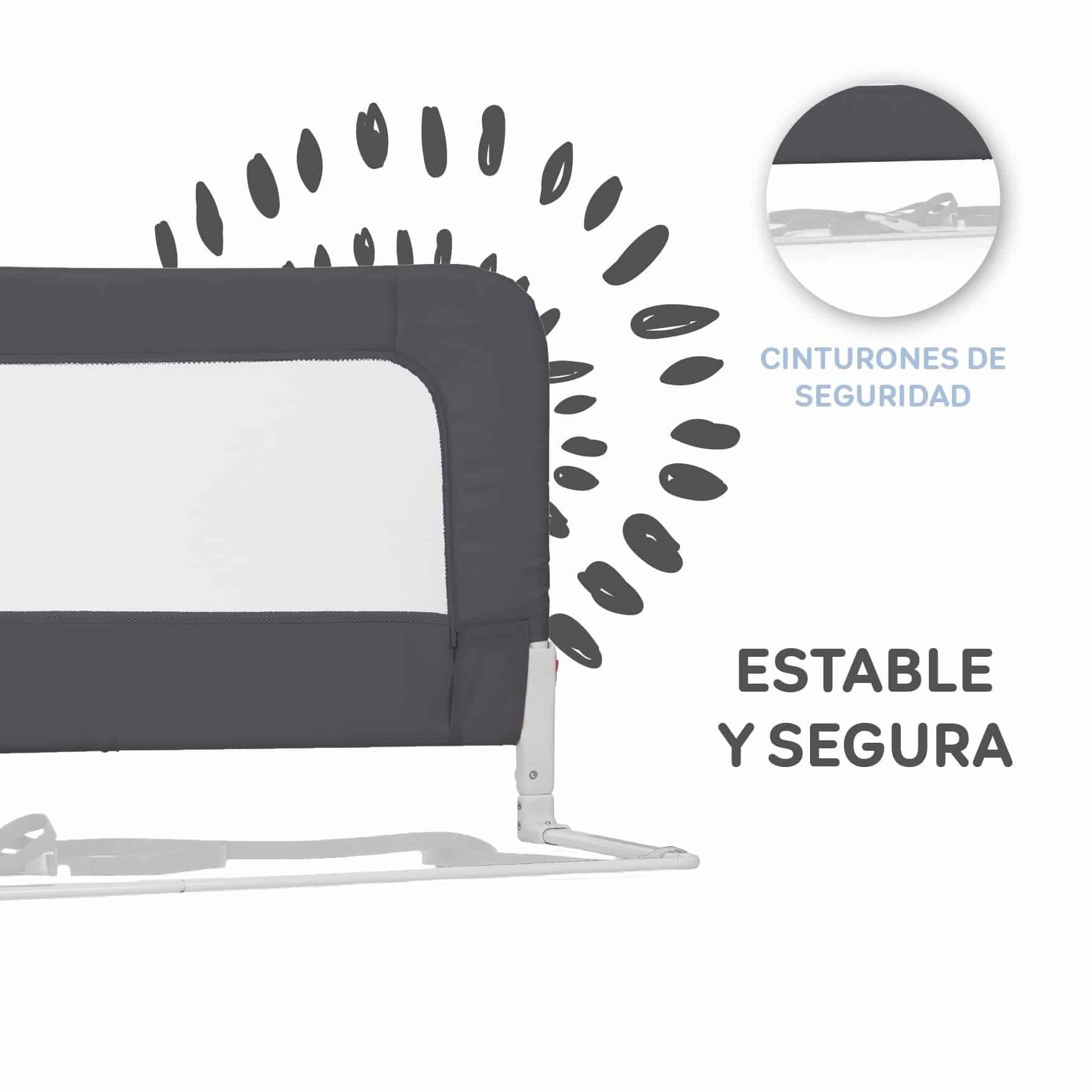 La barrera de cama nido de 150 cm es perfecta para cuando tu peque empieza a dormir solo. Es abatible, ajustable en dos alturas y muy fácil de guardar. Sus juntas laterales permiten abrirla cómodamente para acceder a la cama. Incluye bolsa de transporte.
