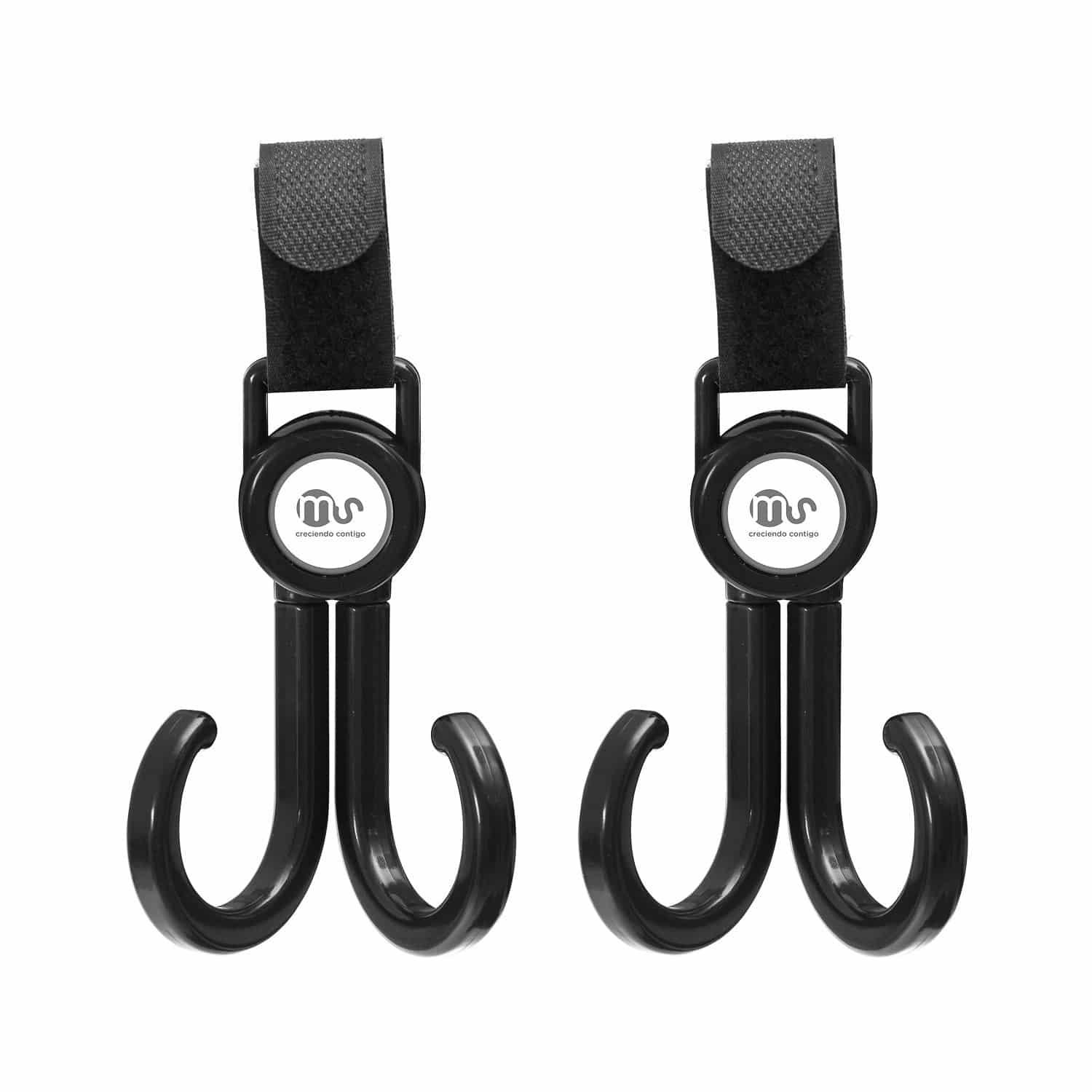 El colgador universal doble permite colgar cómodamente bolsos y accesorios en la silla de paseo de tu bebé.