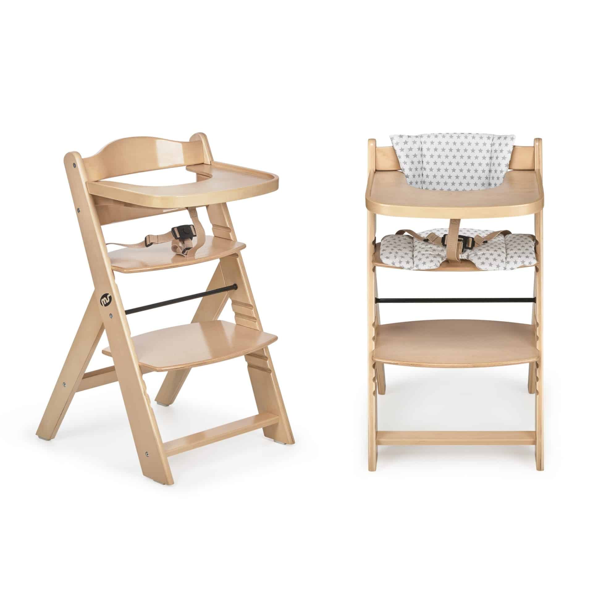 La trona Full Madera es evolutiva y se adapta desde bebés de 6 meses hasta niños de 10 años.