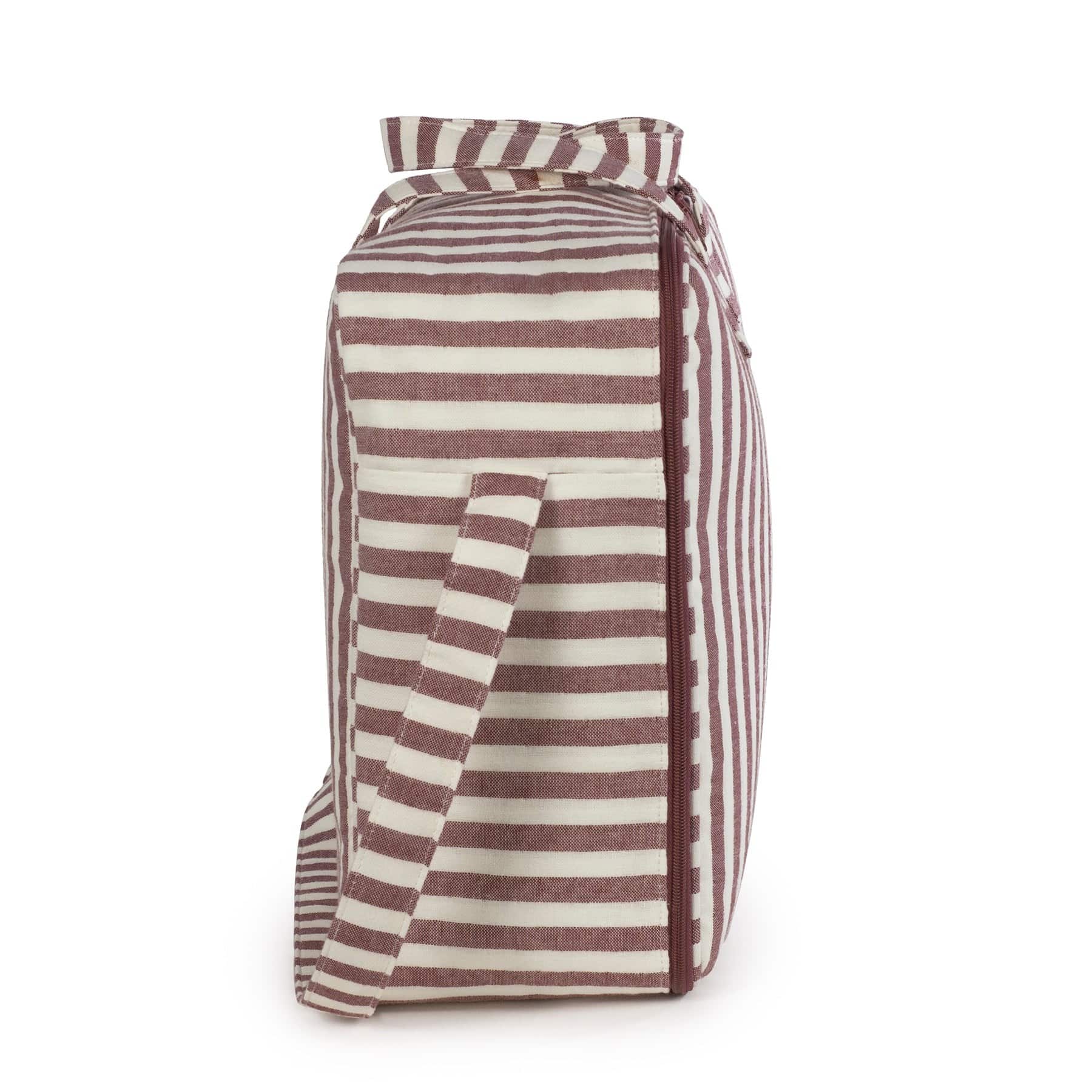 La maleta de bebé Cherry Rayas de Pasito a Pasito es ideal para el hospital o la clínica. Confeccionada en algodón 100% con un delicado tejido de rayas y tratamiento waterproof, es resistente al agua, duradera y muy elegante. Su forma rectangular ofrece gran capacidad y comodidad para guardar todo lo necesario para ti, el papá y el bebé el día del nacimiento.
