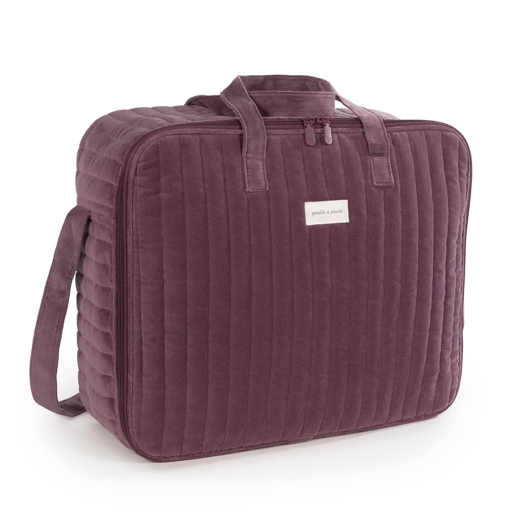 La maleta de bebé Cherry Velvet de Pasito a Pasito es perfecta para llevar al hospital o la clínica. Con un diseño elegante y funcional, está confeccionada en terciopelo de algodón 100% con tratamiento waterproof, que la hace resistente al agua y muy duradera. Su forma rectangular ofrece gran capacidad y comodidad para guardar todo lo necesario para ti, el papá y el bebé el día del nacimiento.
