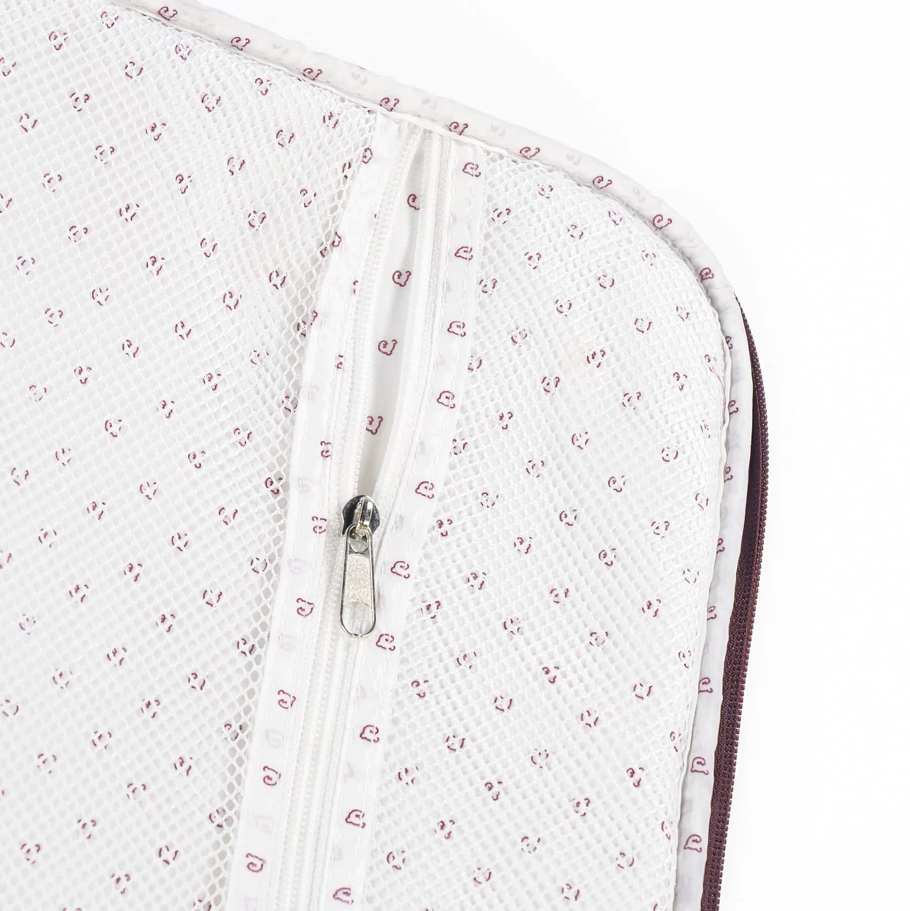 Dispone de un asa larga para colgar al hombro y dos asas cortas para llevar en la mano. En su interior, cuenta con un forro con gomas para sujetar la ropita y una práctica apertura con cremallera de doble cursor que permite abrirla completamente.