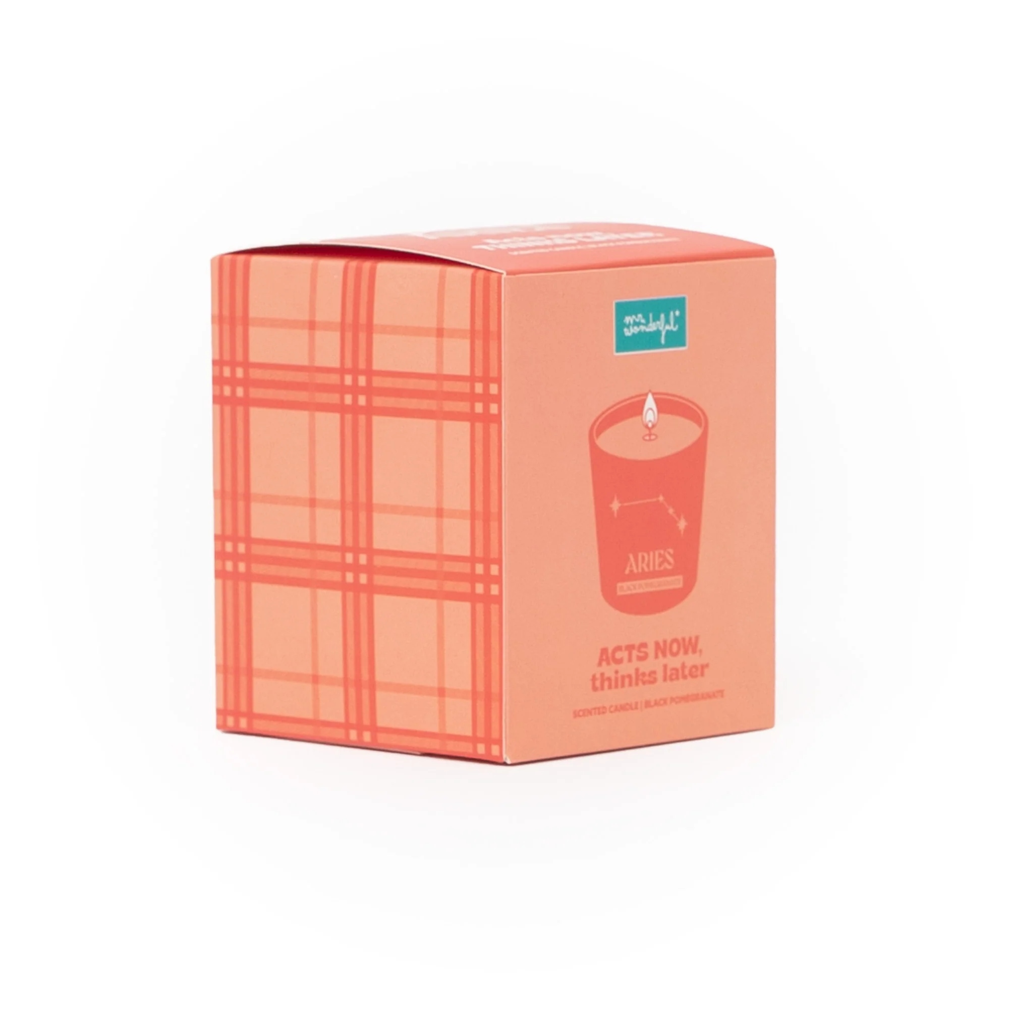 Vela perfumada con aroma a Black pomegranate. Se presenta en un envase de vidrio en el que se ilustra el nombre en inglés y la constelación del signo zodiacal de Aries.