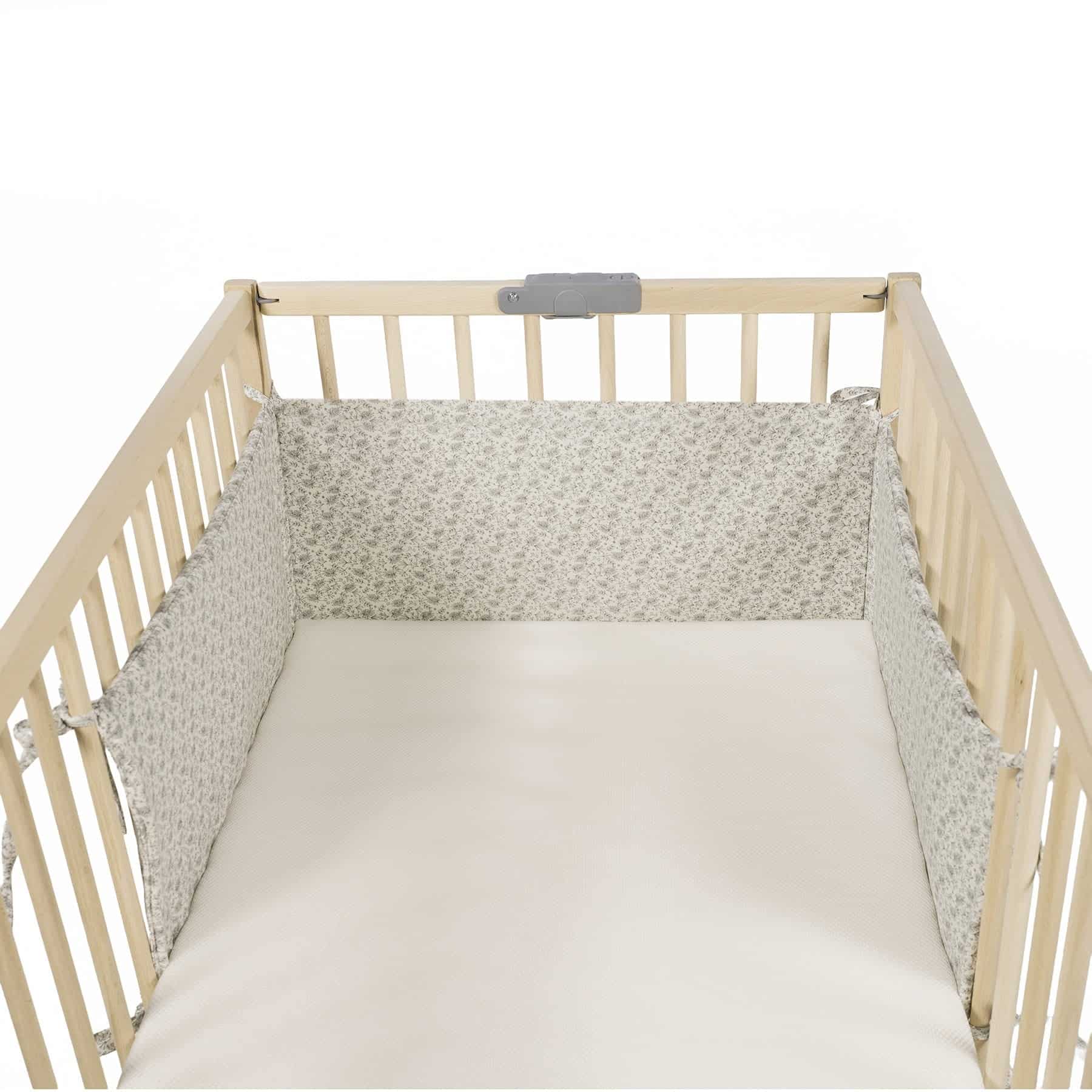 Aporta comodidad y seguridad al descanso de tu bebé con el protector de cuna 120×60 de la colección Gala Mint de Walking Mum. Su interior de rejilla 3D transpirable garantiza una óptima circulación del aire, favoreciendo un entorno seguro durante el sueño del bebé. Confeccionado con materiales suaves, resistentes y de alta calidad, este protector acolchado se fija fácilmente a los barrotes de la cuna mediante lazos, asegurando una sujeción firme y estable. Compatible con cunas de 120×60 cm. Fácil de colocar y lavar a mano o a máquina a 30 °C. Combínalo con otros productos de la colección para un conjunto completo. Walking Mum apuesta por productos funcionales, seguros y con estilo, pensados para familias modernas que cuidan cada detalle. Todos nuestros tejidos son libres de colorantes azoicos y sustancias nocivas para la salud. Cuna no incluida.